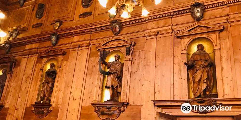 解剖教室位於阿爾基金納西奧宮二層,是世界一個人體解剖實驗室,曾經是博洛尼亞大學解剖課的教室。世紀的歐洲仍處於天主教嚴格控制下,人體解剖這種褻瀆神靈的行為是被禁止的,而博洛尼亞大學則被給與許可。 現在可以算是個博物館,這裡有多國說明,包括中文,英文不好的人也能很有樂趣的參觀。 解剖教室的內部裝潢十分精美,它是一個半地下的沒有窗子的房間,房間內部裝飾著華麗的木製隔板,是一間像小劇場一樣的階梯教室,學生的座椅由高到低圍繞著房間中間的白色石制解剖台,石台四周則由木頭圍欄圍繞著。抬起頭,你會發現,頭頂的天花板正中是太陽神阿波羅,周圍的小格子裡是12星座,結合了神話和星座的裝修很讓人驚喜。 教室四周全身像則是中世紀各著名醫生,半身胸像是博洛尼亞大學出名的各位醫生教授。
