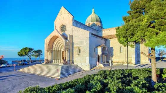 安科納大教堂,也被稱作為聖西里亞科大教堂,位於坐Guasco山頂,所以這裏的視野非常棒,可以俯視全城。教堂是羅馬式建築風格與哥特風格相結合的羅馬天主教教堂,門口是由五個紅色大理石拱門疊搭組成,哥特式圓頂則被認為是意大利非常古老的穹頂,而在內部則有一個希臘式十字。