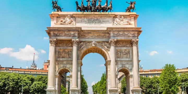 和平門位於斯福爾紮城堡的北面,建於19世紀拿破崙統治時期,過去那裡曾是羅馬牆的一部分。之後,城牆改建成為斯福爾紮城堡的一部分,和平門即單獨樹立於此。如今,和平門所在的地區是米蘭的夜生活的中心地區之一。