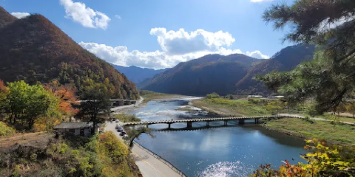 海拔861米的“丙方山”山頂瞭望台上設有漫步200米高空的天空步道,透過U字形的鋼化玻璃,腳下巍峨陡峭的岩壁清晰可見;一眼望去,江原道的山河美景盡收眼底。膽子大的朋友還可以體驗一下近在一旁的高空飛索,享受飛躍高山、翱翔樹端的刺激與快感。