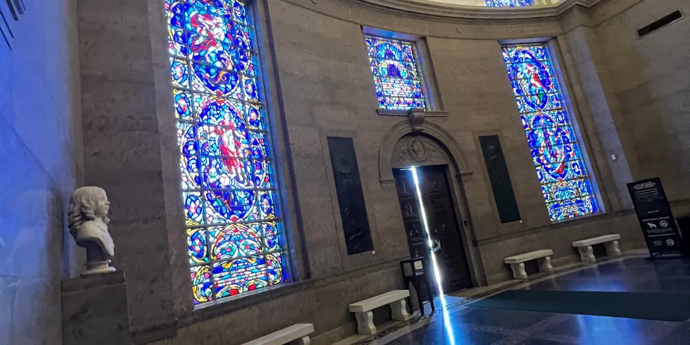 ArmstrongBrowningLibraryandMuseum位於美國韋科,教堂外部林木葱鬱、綠草如茵,內部金碧輝煌,除了閲讀種類豐富的書籍外,遊客還可以欣賞精美的壁畫和彩繪玻璃。