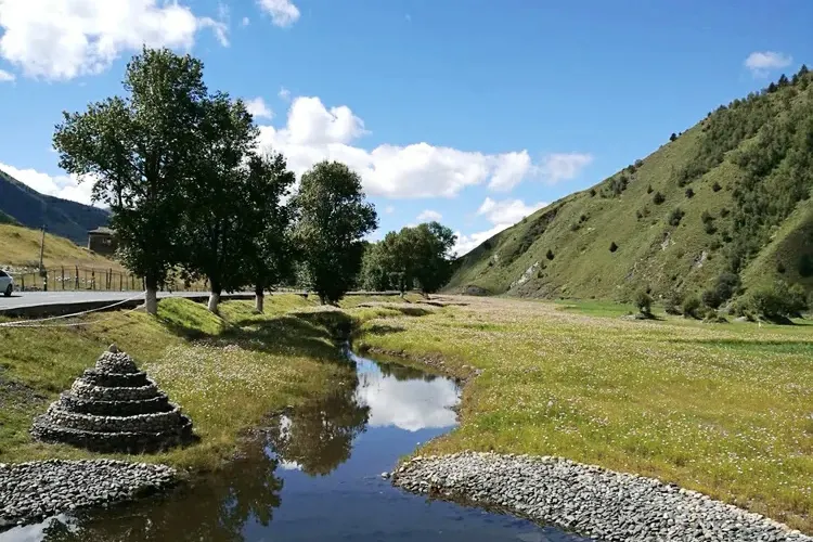 則評價甘孜州的新都橋,位於川藏線318國道上,這裡景色優美,號稱“攝影家的天堂”。每一個來到新都橋的遊客,都會被眼前美麗的景色所震撼。這裡有高原的草甸、清澈的河流,遠處的山坡上有大片吃草的牛羊,還有散落在各處的藏族村寨。每年春季,這裡的樹葉變得金黃,是一年中最為美麗的時光。