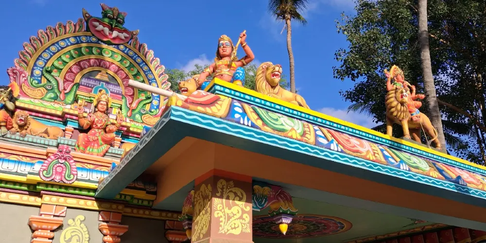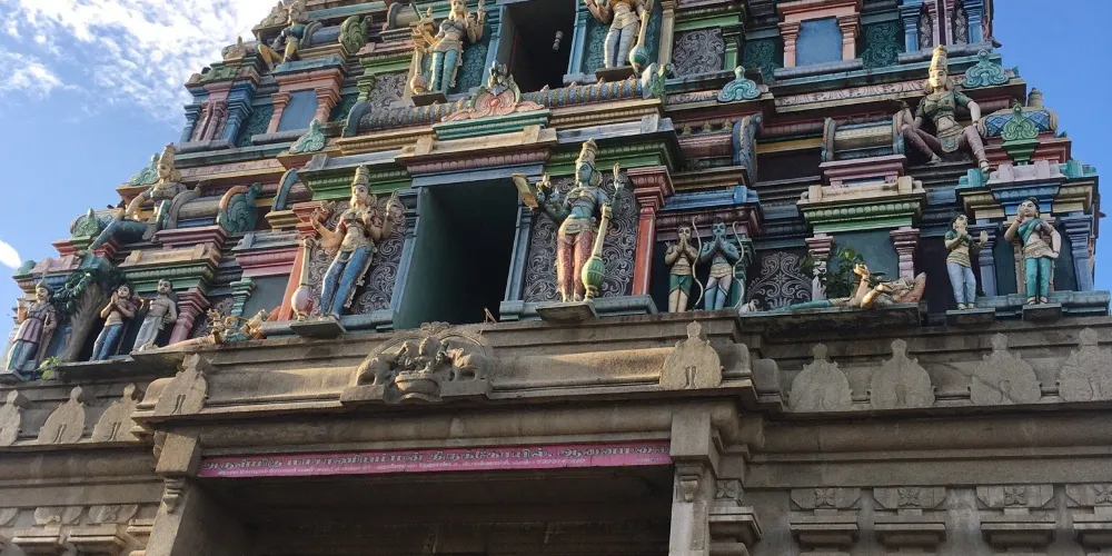 寺廟的建築風格體現了南印度傳統的德拉威建築元素,高聳的門塔(gopuram)上雕刻著豐富的神話故事浮雕,色彩鮮明且細節精緻。廟內設有主殿供奉 Maasani Amman,同時也有一些小型附屬神龕供奉其他印度教神靈。信徒通常在主殿前點燃香火、獻花並進行祈禱,以表達敬意和祈求保佑。