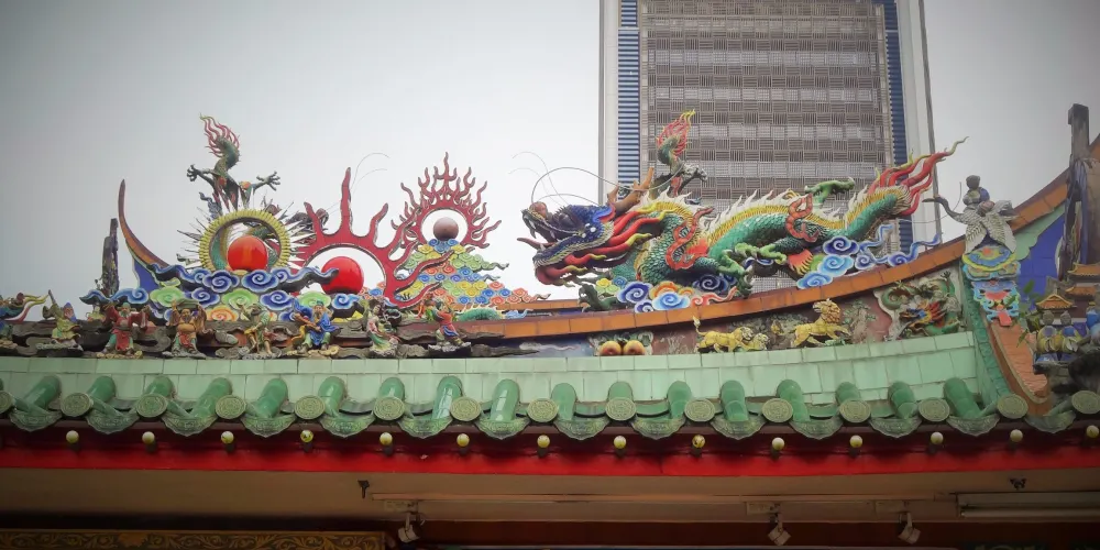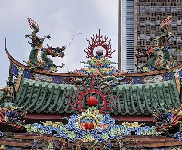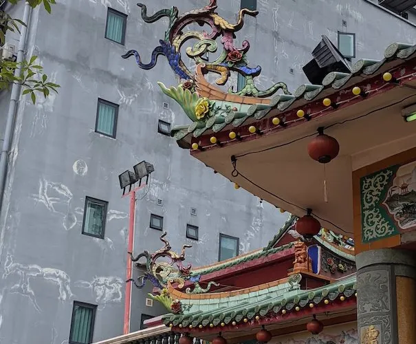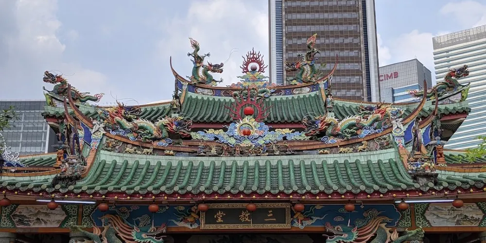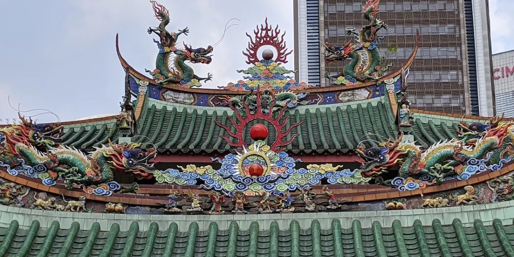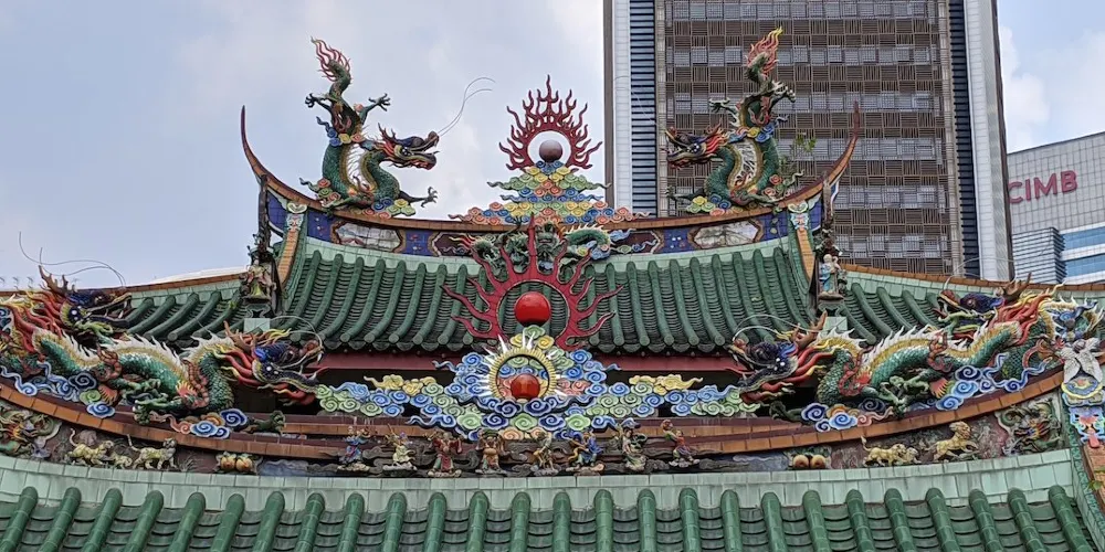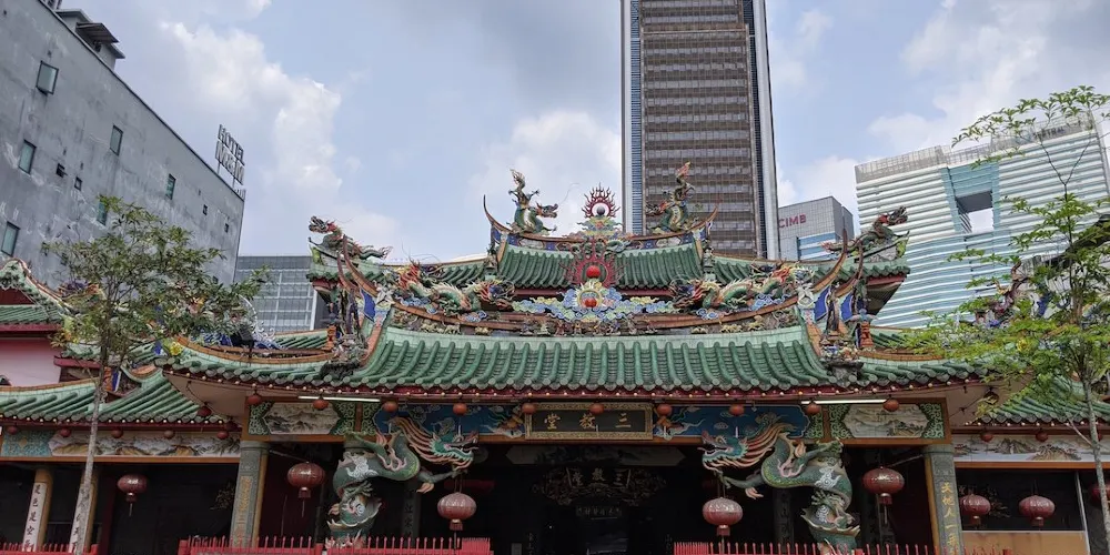 山姆漢口通地處吉隆坡十五碑單軌鐵路總站附近,據傳以前有一條中國龍從這座寺廟的角落裡飛了出去,給這座不老寺廟增添了一層神祕色彩。古寺就像一個處變不驚的古老傳奇,在現代社會中依然保持着自己的那份清高,與吉隆坡中環上迅速拔地而起的摩天大樓形成了鮮明的對比,極具復古氣息。