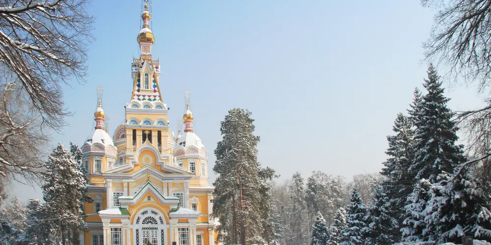 昇天主教座堂(俄語:Вознесенскийсобор,英語:AscensionCathedral又稱ZenkovCathedral)是阿拉木圖一座東正教主教座堂,高56米。整座建築沒有使用一根釘子。教堂1903年9月26日奠基,1907年啟用。蘇聯時期曾用作博物館、鐘樓、廣播發射塔。1973年曾做修復工作。1995年5月歸還俄羅斯正教會。1997年重開。