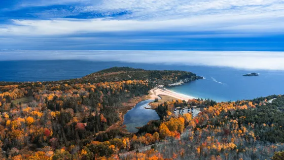 整個國家公園散佈於Mount desert island、Schoodic peninsula及Isle au haut三個小島上,其主要景點集中在Mount desert island,而位於該島上27英裡長的公園環繞路線則盡攬了整個公園的精華:嶙峋的礁石、蒼鬱的森林、彎延曲折的海岸線、高聳的山峰、深邃的峽灣、明鏡般的湖泊、壯麗的潮汐,再加上一望無際的藍得沒有一絲雜色的大海,這一幅幅如詩如畫的美景便勾勒出了阿科底亞國家公園的概貌。島上1530英尺高的Cadillac Mountain不僅是公園內的最高點,而且也是美國東部沿岸最高的山峰。從這座高聳於小島上的山峰放眼望去,眼前廣闊壯美的景色令人頓有一種橫空出世、一覽眾山小的豪邁氣概。位於小島最南端的Bass harbor燈塔是小島上唯一的燈塔,公園環繞路線並未將其囊括在內,因為這座燈塔離公園的主要景點較遠。