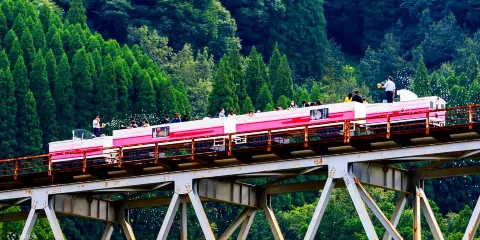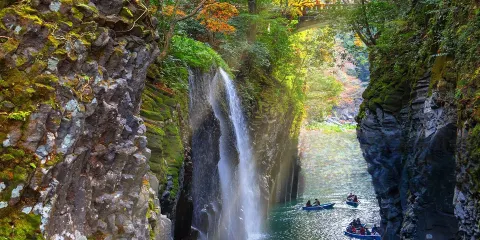 在阿蘇山口搭乘纜車,約四分鐘就可以抵達標高一百零八公尺的山頂,遊客在此可以觀賞中嶽火山口不時噴出的滾滾煙霧,裸露的棕褐色岩層。