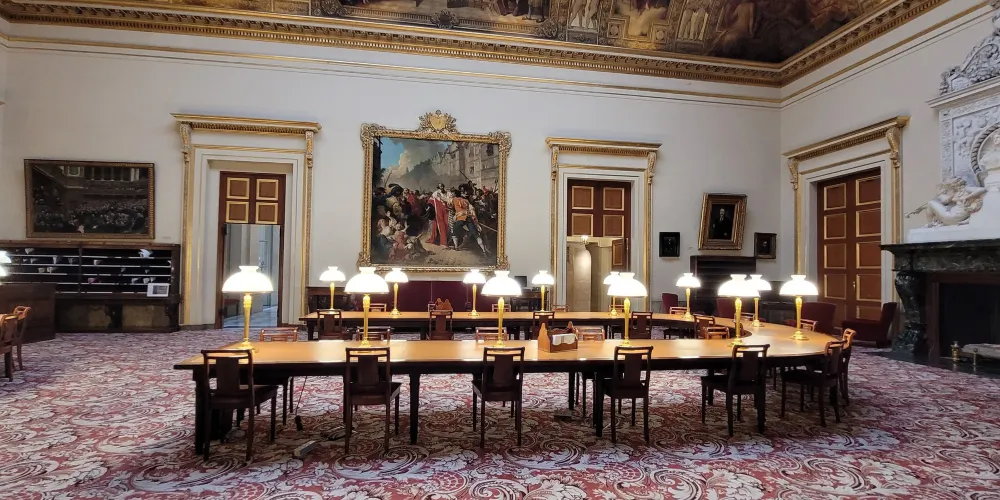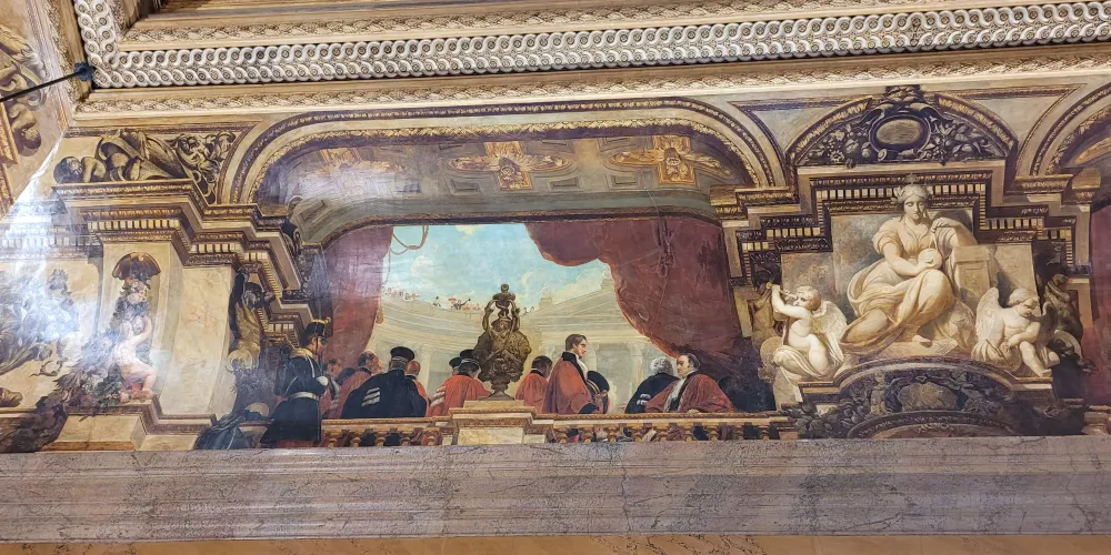 1850 年代和 1860 年代,擴建羅浮宮並使其更加現代化的重大工程正在進行中。以前的宮殿已經部分改建為博物館。拿破崙三世皇帝建造了一座新翼樓,以騰出更多空間來展示更多藝術。他的叔叔拿破崙一世建造的舊樓梯已不足以進入所有畫廊。當時留下的唯一東西是通往義大利繪畫收藏的天花板和拿破崙一世手下部長達魯的名字。