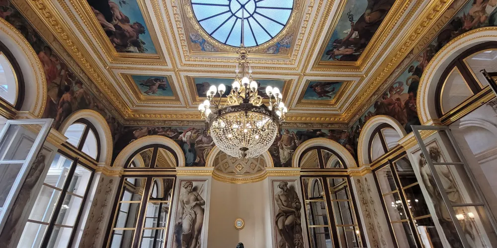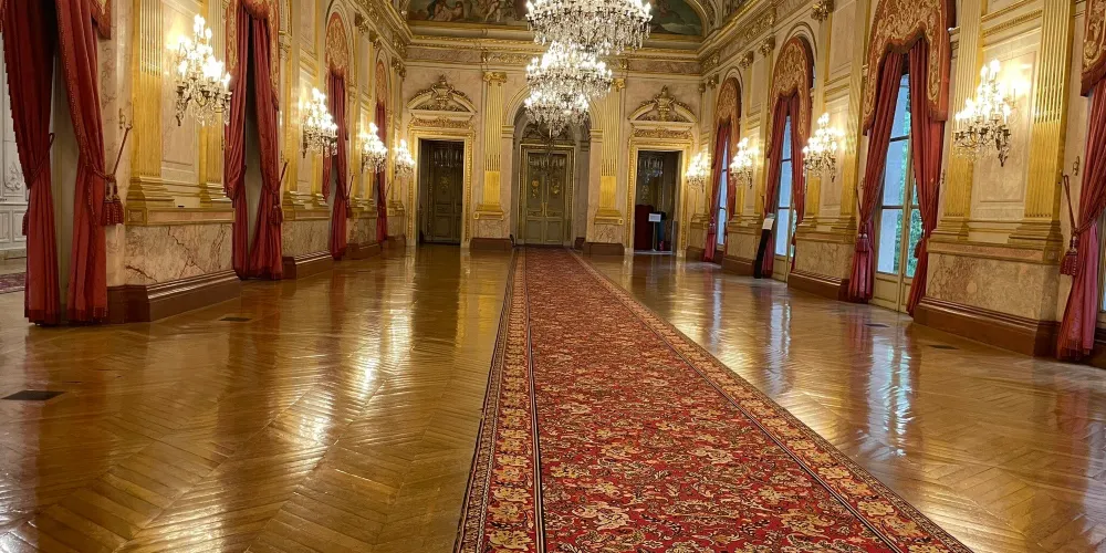 達魯樓梯是這場非凡展覽的完美場所。它是 19 世紀第二帝國時期建築師 Hector Lefuel 建造的六座宏偉樓梯之一。