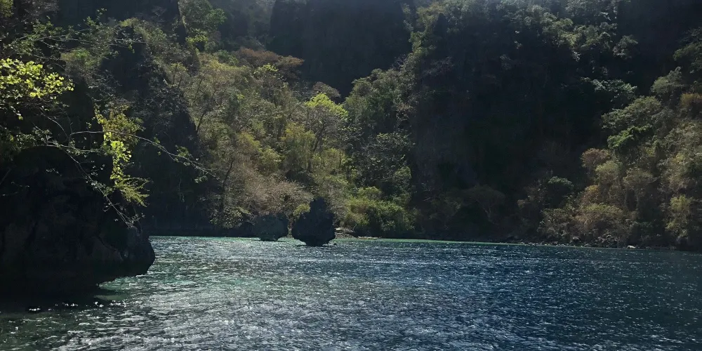 之所以叫雙子瀉湖,是因為被山隔開成兩個湖,而這兩座山之間只有一個2米長的岩洞相連。岩洞的頂端只高出海面20公分,想要從一池遊到另一池,必須得從這個岩洞下面遊過去,或從搭建的梯子爬過去。從船上可以直接下水遊泳和浮潛。