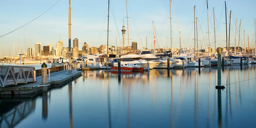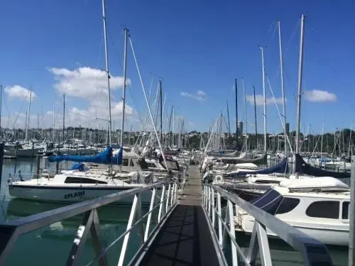 來到俱樂部的港口邊放眼望去,就知道奧克蘭“帆船之都”的美譽並不是浪得虛名,帆船細長的桅杆與背景中的天空塔及樓群形成了一道獨特的城際線。停泊的大大小小的帆船和遊艇密密麻麻,種類繁多,真正是千帆競技,無比壯觀。