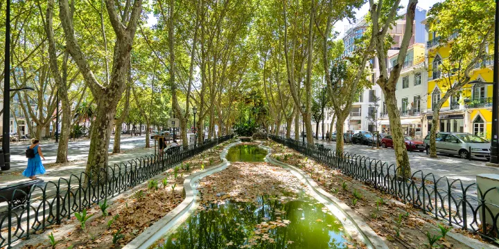 自由大道是里斯本市中心最主要的一條街道,建成於1755年。精緻鋪設的石砌步行道上鑲嵌著漂亮的彩繪地磚,道路兩側是連綿無盡的茂密樹木,並且林立著多家高級酒店、各種高級名牌商店,被稱為葡萄牙的“香榭麗舍大道” 。
