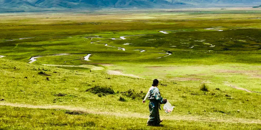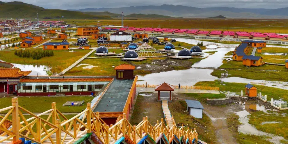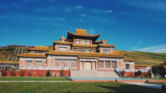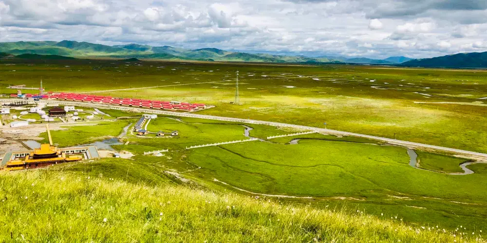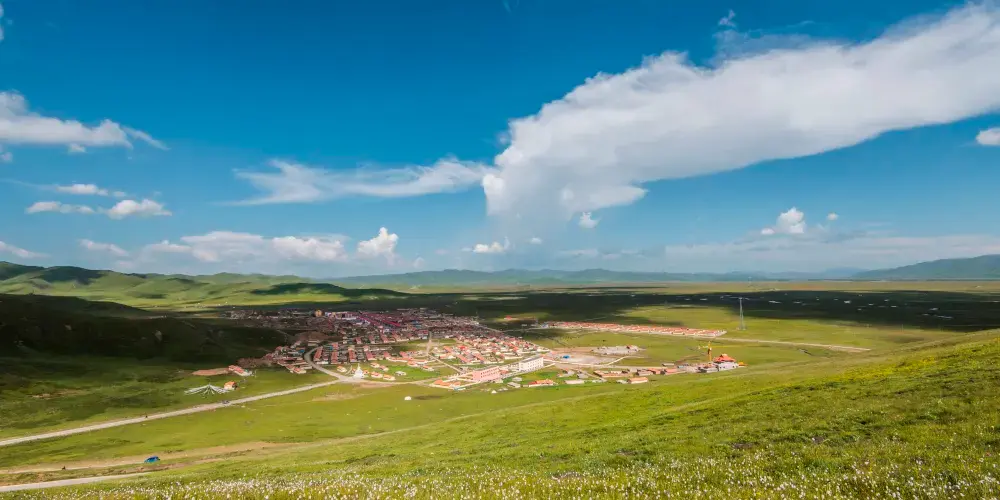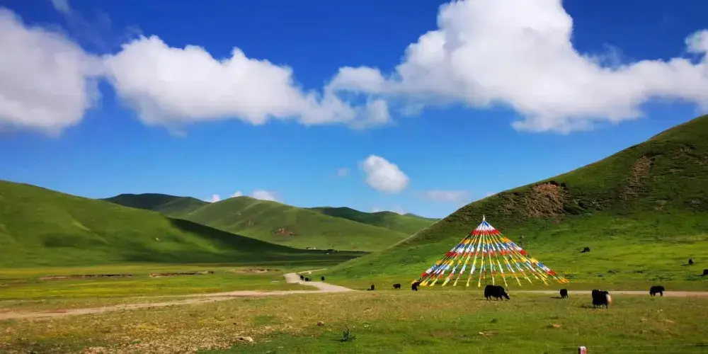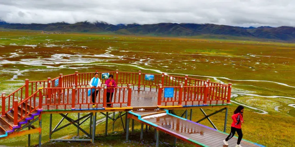 阿萬倉鄉距瑪曲縣城約55公里。阿萬倉是我國有名的濕地若爾蓋、尕海、曼扎塘濕地的核心區。這裏因水瀉不暢而形成很多汊河和沼澤,使這片廣袤的草原水草豐茂、牛和羊非常肥壯。是一片蒼涼而壯麗的草原。貢賽爾喀木道,是阿萬倉有名的濕地草原景區。貢賽爾喀木道,是貢曲、賽爾曲、道吉曲這三條發源於雪山的河流與黃河的匯合之處,它包括有名的阿萬倉娘瑪寺院、散日瑪寺、賽爾霞溝吐蕃贊普赤德松讚的軍事指揮部遺跡。