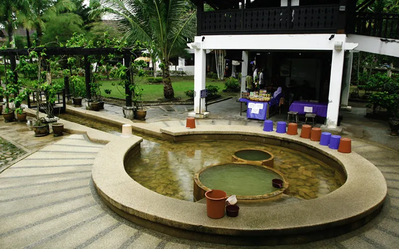 這座村莊面向蘭卡威島的北方,離通往丹絨魯海灘的岔路不遠。它也是島上唯一的溫泉村,裡面的建築都是馬來西亞式的高腳屋。這裡是將頗受歡迎的溫泉井(Telaga Air Panas),再經開發而成為現在的溫泉村。溫泉村吸引旅客的是一座三層式溫水噴泉,一幅長十八公尺的手雕河石壁畫,描繪著當地傳說。