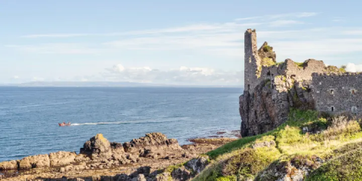 - 5分距離市中心7公里卡爾津城堡起初是一個不規則的L型塔樓式建築,後由建築師亞當接手,亞當花費了大量時間,描繪出用巖石砌成的具有幻想風格的園林建築的具體實現,是新古典主義建築流派的典型案例。城堡屹立在蘇格蘭多巖石的海岸網上,外觀如童話般浪漫,四周環繞着澎湃的海洋和茂密的森林,城堡周邊就是國家公園,漫步在林中很是愜意。