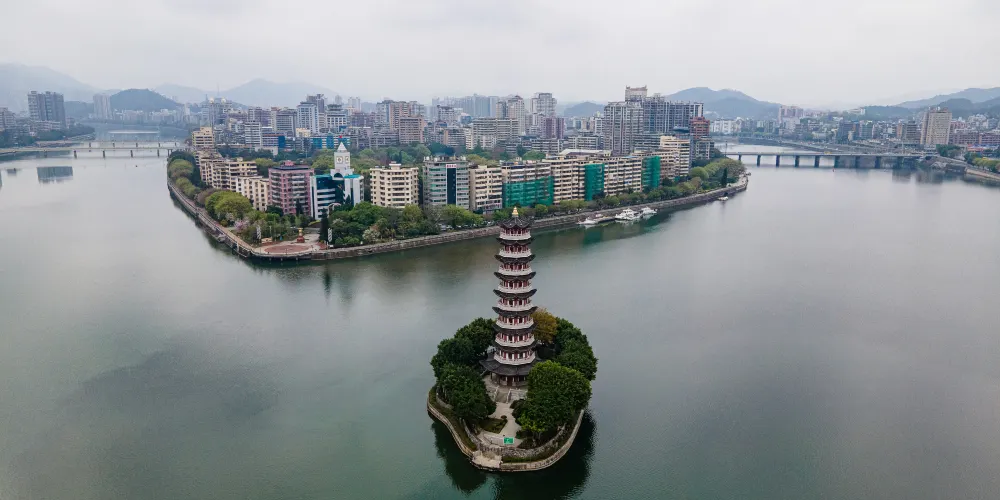 通天塔位於廣東省韶關市,始建於嘉靖年間,後毀於兵亂而重建。原通天塔遺址保留至今,併發掘出大量的青磚、瓦片和磚制構件等重要歷史文物。現在的通天塔是宋代的閣樓式設計風格,似文筆聳立,寓意非凡。