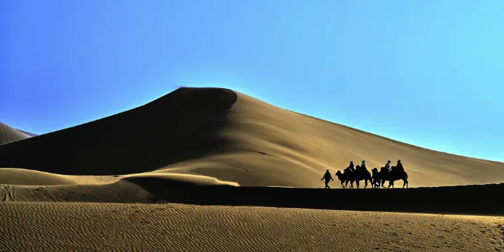八道橋沙漠是我國第三大沙漠巴丹吉林沙漠的北緣部分,是胡楊林與沙漠景觀的結合部。達來呼布鎮到八道橋23公裡,從縣城驅車半個小時就到了。這裡是拍攝沙漠日出、日落的絕佳地點,是額濟納政府指定的露營所在地,也是不用深入沙漠就能體驗到沙漠、綠洲風情的地方。遊客可以在這裡滑沙、騎駱駝,還能看到風格不一的沙雕。在這裡能感受到沙漠的粗獷和壯美,日出、日落之時一片金色的沙漠,尤為出彩。