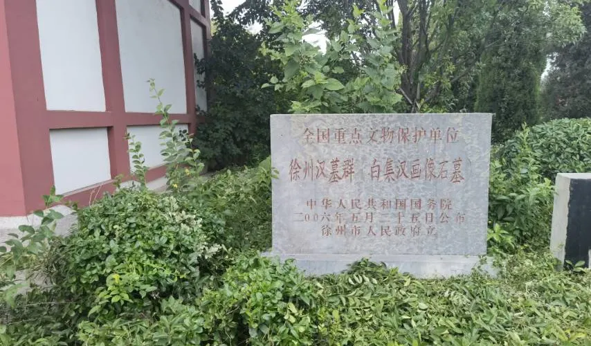 白集漢代畫像石墓為徐州地區保存非常完好的一座東漢祠畫像石墓,由漢墓、文物展廳和漢畫像石廊組成。該墓上有較大的封土堆,墓葬整體結構由祠堂和墓室兩部分組成。墓室分為前、中、後室,中室,附有左右耳室。整個墓室為疊澀式封頂。該墓畫像分別雕刻於祠堂及前、中、後室。畫面內容十分豐富,其題材涉及社會生活、神話傳説、仙境祥瑞、歷史故事等諸多方面。如反映現實生活的車馬出行、拜謁饗宴、博局對奕、舞樂百戲等;反映神話傳説的玉兔搗葯、東王公、西王母、伏羲、女媧等;反映祥瑞題材的珍禽異獸、瑞木嘉禾等等,從中再現了漢代真實的社會生活及當時人們的宗教、哲學和審美意識。