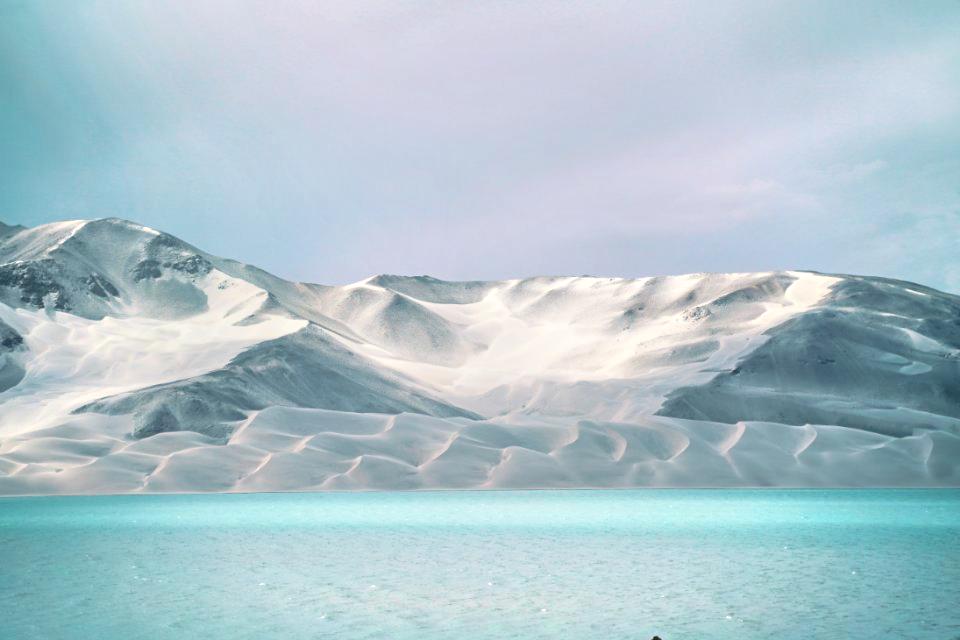 白沙湖—白沙山景區,位於阿克陶縣布倫口鄉,距離阿克陶縣縣城150公里。白沙山是新疆奇特景觀之一,又稱為「響沙山」,每當有勁風吹來,白沙山就會發出響聲。白沙山山前是布倫庫勒湖,山後是恰克拉克湖,水草肥美、水鳥聚集,青色的山體被白沙所覆蓋,半遮半掩,起伏延綿,與山頂的雪山和山下的湖泊河流,形成了氣勢恢宏的一大奇觀,美不勝收,令人驚為仙境。布倫庫勒湖是新疆濕地自然文化景觀,柯爾克孜語意為「山腳落的湖」。