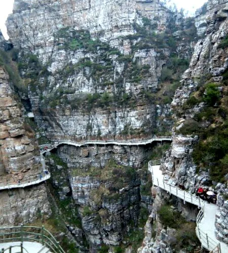 白石山世界地質公園位於保定淶源縣城南,是以壯觀的大理岩峰林地貌為主的自然風景區,白石山因山體遍布白色大理石而得名。景區山頂區域的白石畫廊擁有一條玻璃棧道,玻璃下方便是懸崖峭壁,如果膽夠大的話,值得一走。