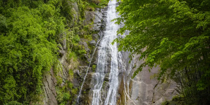白水沖瀑布,在浙江省餘姚市梁弄鎮南的白水山上。白水山又名白山,因有白公在此修煉得道而名,山上有冶山、屏風、石屋、雲根四峰,石屋峰怪石嶙峋,峭壁懸崖;雲根峰蒼翠奪目,流泉生輝。兩峰之間,一簾飛瀑從高處飛瀉而下,形若白龍飛天,聲若沉雷震地,蔚為壯觀,這就是白水飛瀑,俗稱白水沖。