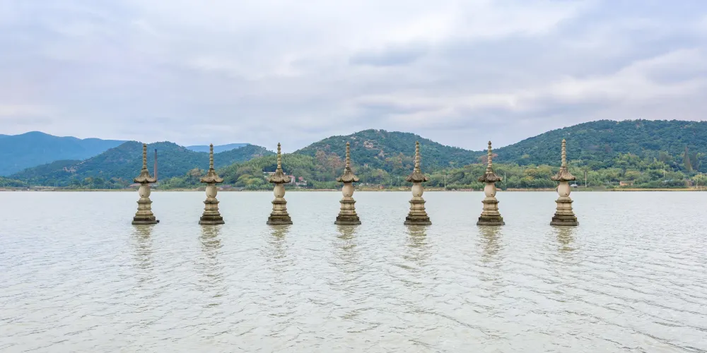 白洋湖古稱“舊陽湖”,位於慈溪鳴鶴古鎮西南。據史書記載,白洋湖系古代潟湖,形成於兩漢期間。白洋湖的獨特魅力在於它蘊含著濃厚的歷史文化,知名的佛學家弘一法師(俗名李叔同)就曾駐錫金仙寺。此外,湖西山麓還有規模宏大的革命烈士陵園。