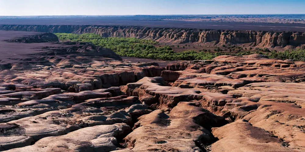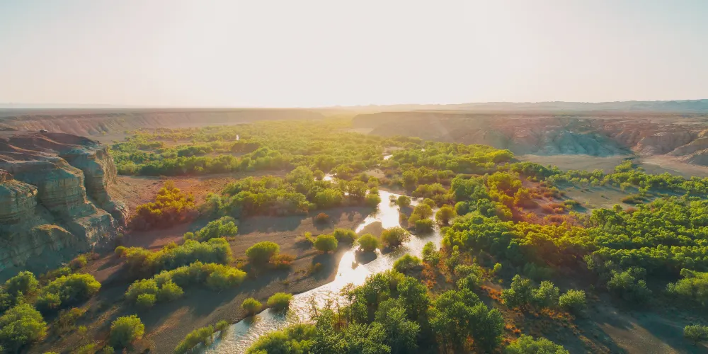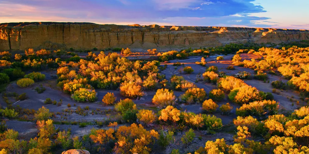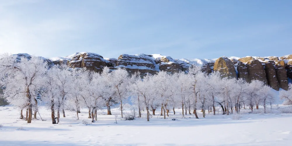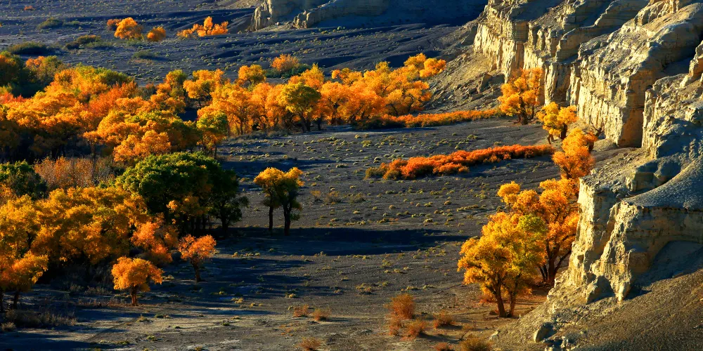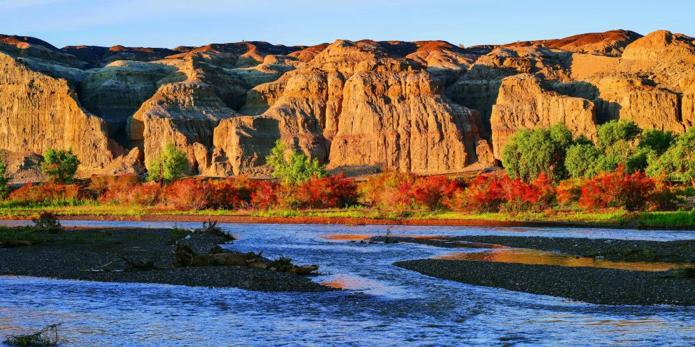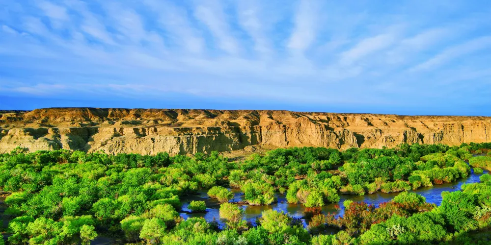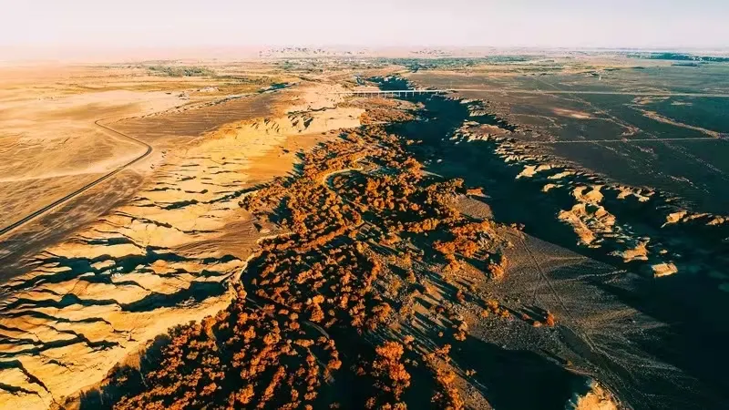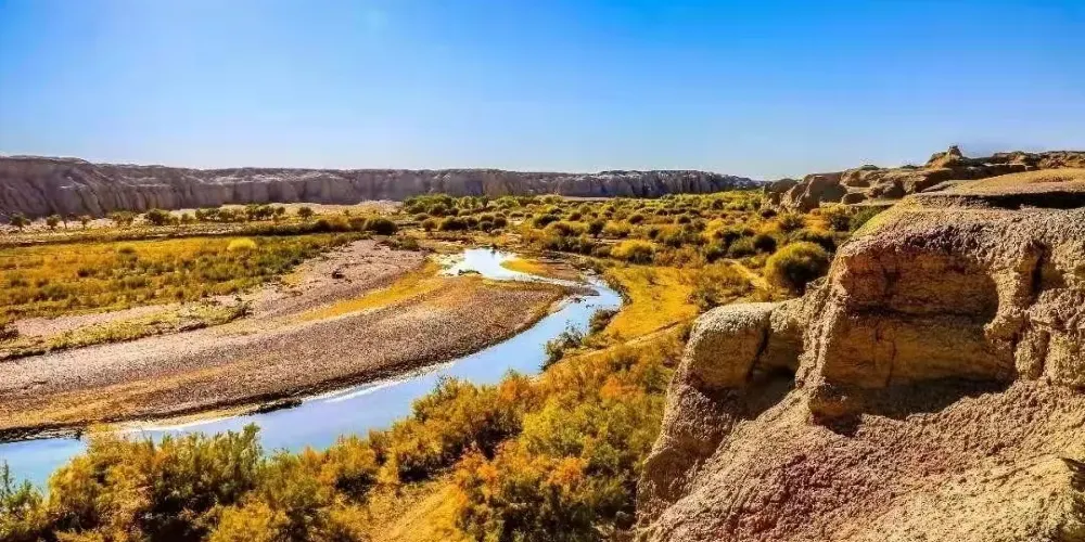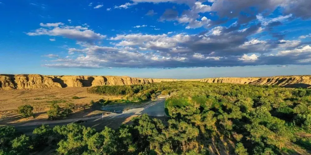 白楊河大峽谷是典型的雅丹地貌和峽谷風光景區,河水多曲流沿谷地蜿蜒而下。景區共有八處過水路面,自駕線路長約12公里,可以體驗現代交通與自然融合的渾然之趣,水流兩側植被豐富覆蓋度達60%,胡楊佔喬木類的90%以上。