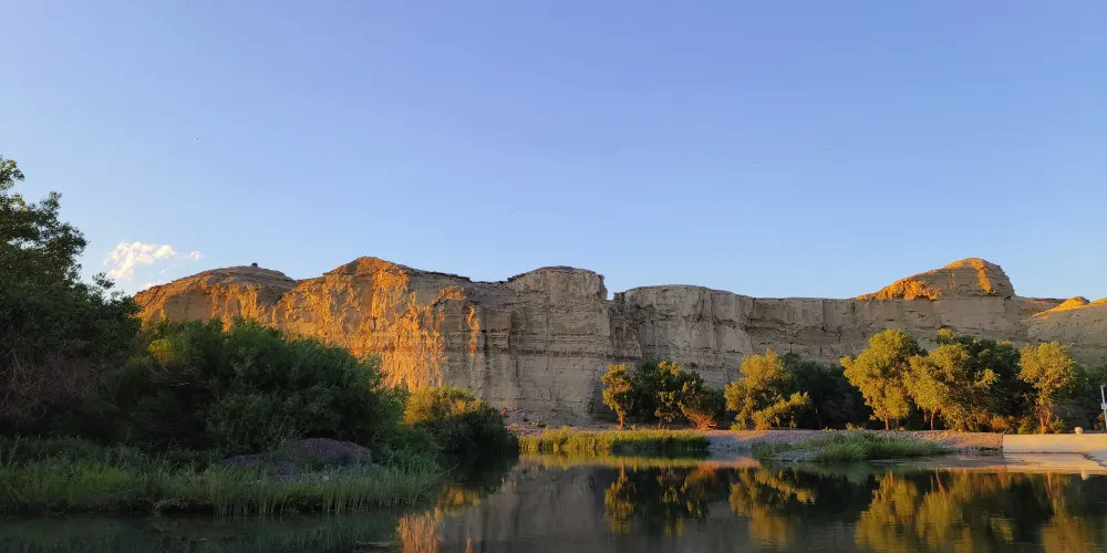 白楊河發源於新疆西部的烏爾喀什爾山,自西向東曲折蜿蜒近170公里匯入艾里克湖。白楊河沿岸景致紛呈,既有大漠綿延,又有山岩聳峙,集荒漠、山地雄奇風光與碧水藍天於一體,而從白楊河水庫至克拉瑪依烏爾禾區24公里的白楊河大峽谷,河谷地林木茂密,河水蜿蜒,風景優美,夏季氣溫明顯低於周圍地域更是成為克拉瑪依觀光、漂流、避暑的好去處。