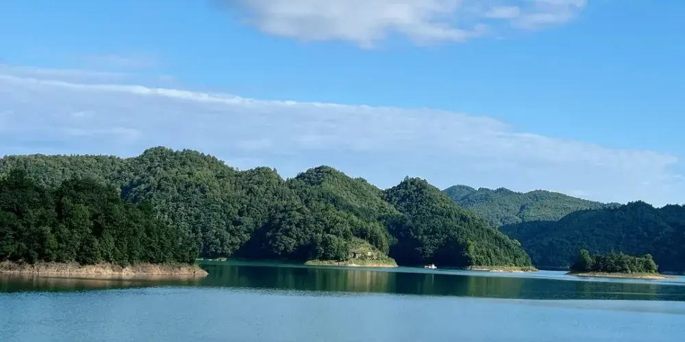 白雲湖是修建白雲電站而形成的人工蓄水湖,壩高121米,湖總面積9.6平方公里,平均水深83米,總體容量3.6億立方米。