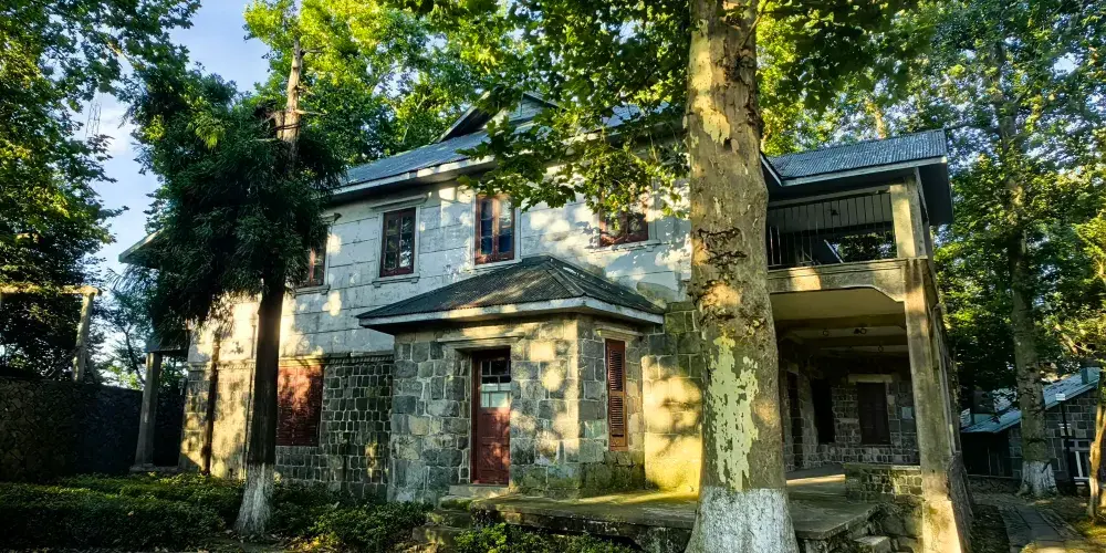 白雲山館建於1915年,1927年被蔣介石富有的結拜兄弟黃郛買下。別墅由英國人建造,尖頂方窗,造型硬朗,簡潔大氣,頗具英倫風。在莫干山二百多棟別墅中,比較具有政治意義的就是這個白雲山館了。別墅是兩層樓。二樓有南北朝向的臥室和起居室。 1928年,蔣介石與宋美齡在莫干山度蜜月,就住在二樓的套房裡。