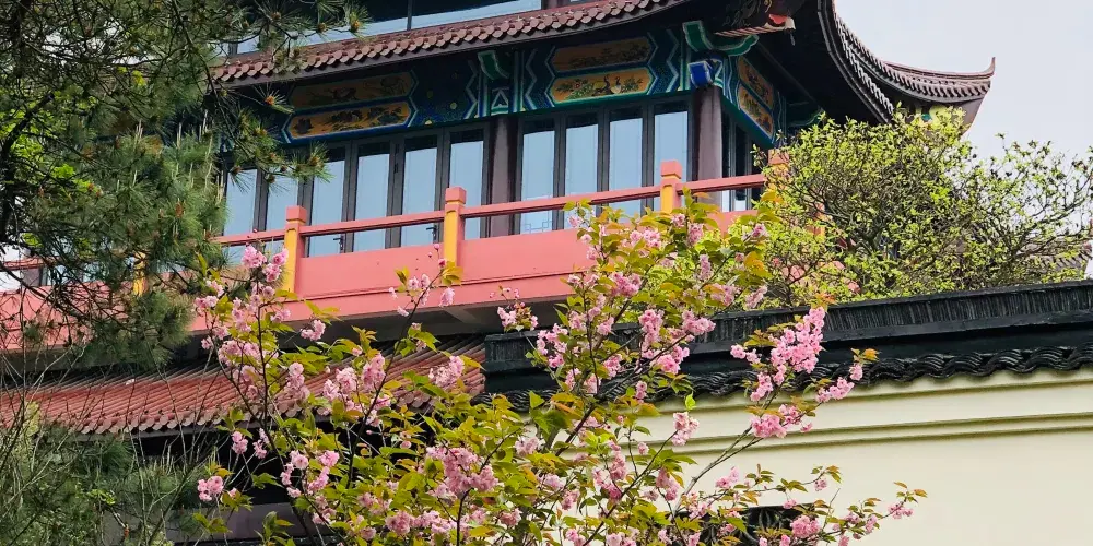九曲徑登山口在景區南面,這段登山道是石頭砌的階梯路,不算難走,但整個走下來還是要出身汗的。半山腰會經過雲岫庵,東院為遊覽區,西院為生活區,東院有一戲台,古色古香的。進入雲寽庵需另購票10元,有興趣進去看看。繼續沿著古道上山,登上鷹窠頂,天氣晴好時這裡視野開闊,可以俯瞰整個南北湖景區的山湖景色,遠處就是大海,但看不真切。