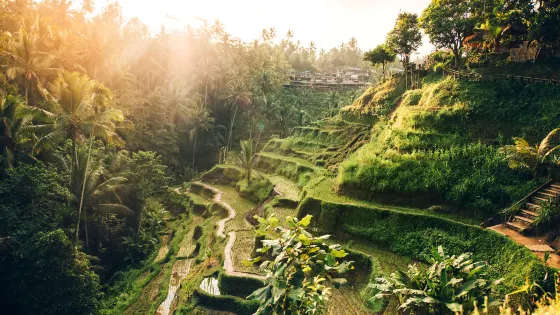 4.4 分376 則評價距離市中心25.8公里德格拉朗梯田是電影《美食、祈禱與戀愛》和《稻香》MV的拍攝地。遊客可以在餐廳一邊享用印尼風味美食一邊欣賞梯田風光。這裡附近還有一條手工藝品街,手工藝品十分精美。遊玩方式在烏布可以參加前往德格拉朗等北部地帶的一日遊或半日遊。乘坐敞蓬吉普車,從烏布通往德格拉朗的主要道路上一路都能看到風景宜人的水稻梯田,綠油油的梯田鑲嵌在椰子樹下,清新的空氣瀰漫著山野的味道。梯田隨著山勢連綿而下,水源源不斷從山上流下注入稻田、滋潤禾苗,搭配著青山和椰樹,蜿蜒的梯田線條十分迷人。在這裡會發現許多明信片和攝影作品上熟悉的場景,點綴在田野間的椰樹與梯田交相呼應,遠方則是雄偉的火山背景,熱帶叢林與田園風光的相互契合讓這裡顯得與眾不同。不過,如果看過壯麗的廣西龍脊梯田和雲南元陽梯田,德格拉朗梯田就要顯得小巧的多。除了在觀景餐廳眺望梯田,還可以從公路旁沿著田埂走到梯田中去,近距離感受熱帶田園的風情。不過,狹窄的田埂走起來並不輕鬆,需要下到谷地再攀爬而上,而且梯田陡峭濕滑。門票 HKD 30+