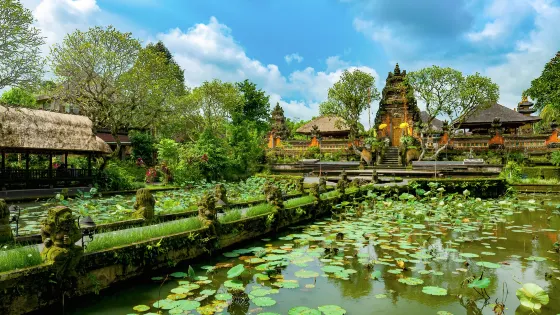 母神廟是巴厘島一處皇家園林寺院,建造於1634年,是島內第二大寺廟。 進門是大片的草坪,內庭是各種祭祀神壇,寺廟內有諸多祭塔和29座祖先的神位,還有美麗的護城河和花園。母神廟的廟門用紅磚修砌而成,頂部用石磚裝飾成山形層層遞增,每層都雕刻著數個小神像,灰跡斑斑的石磚與雕塑顯示著它的百年滄桑。