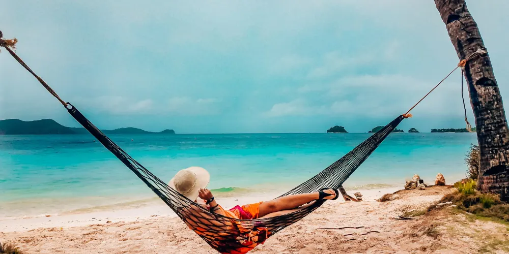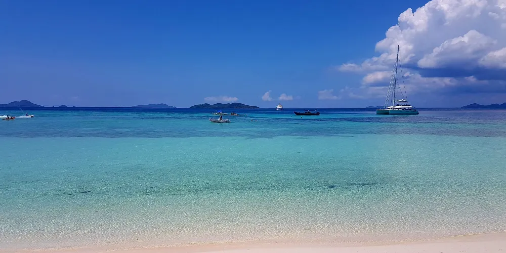 香蕉島比較出名的莫過於這里大S型的沙灘,也因其酷似一隻大香蕉,因此才被稱為香蕉島。這裡的大S型沙灘堪稱一絕,沙質潔白無瑕,岸邊有很多吊床讓遊客休息,美好的風光極其適合拍照。水很淺的地方就有很多魚,因此也極適宜浮潛。