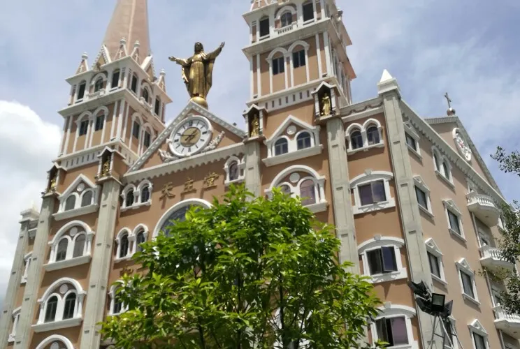 寶安耶穌君王堂是一個天主教堂,是深圳比較美的教堂,位於深圳市寶安區殘聯旁。進入景區院子大門之後,左手邊是一個假山瀑布,假山中有聖母像,右手邊就是教堂了。教堂主體建築共四層,建築非常有特色,氣勢宏偉,這裡環境優雅,堂內可容至少一千七百人就座,充滿了異域文化的氣息。
