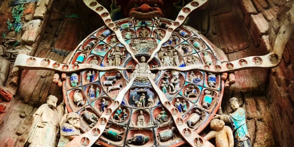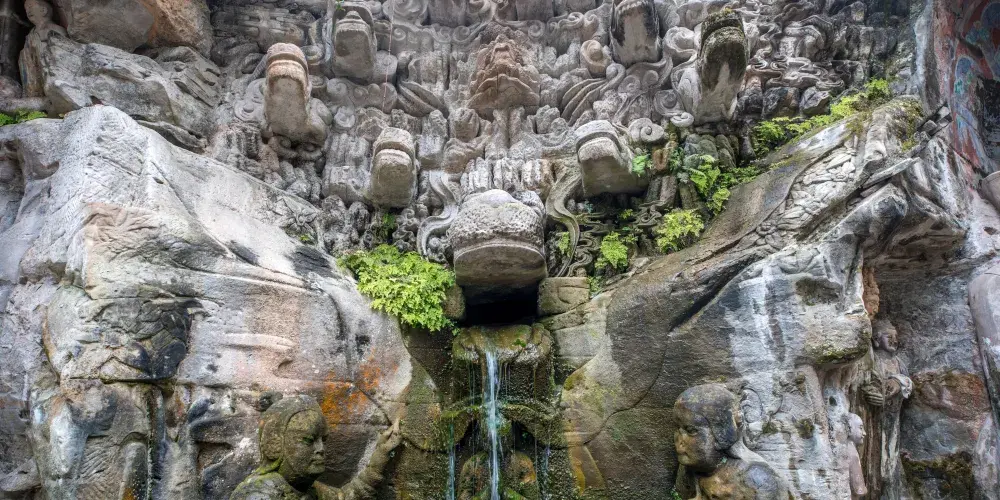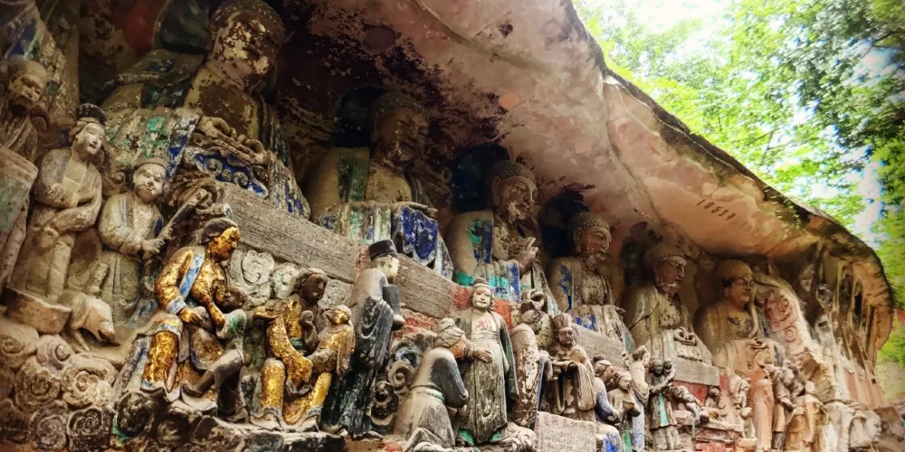 重慶市大足區境內的大足石刻,是世界文化遺產。大足石刻包括寶頂山、北山、南山等處,在這裡可欣賞到保存較好的唐、宋時期的石刻造像藝術。在眾多的石刻群中,以寶頂山與北山石刻著名。寶頂山的“六道輪迴圖”和“十惡罪報圖”值得細細品味。北山的佛像,既有唐代雕刻的古樸,又具宋代造像的修秀麗。
