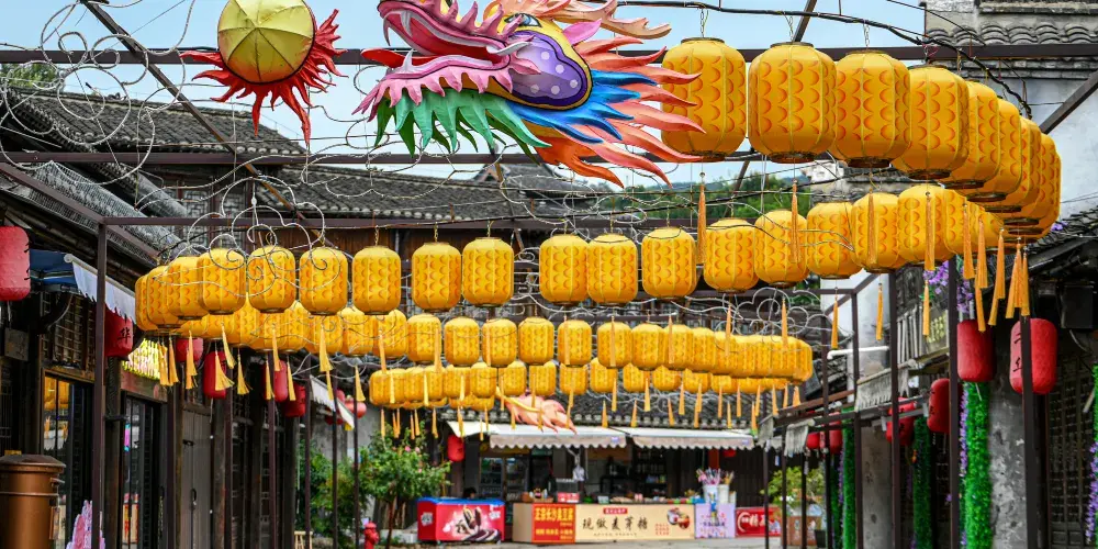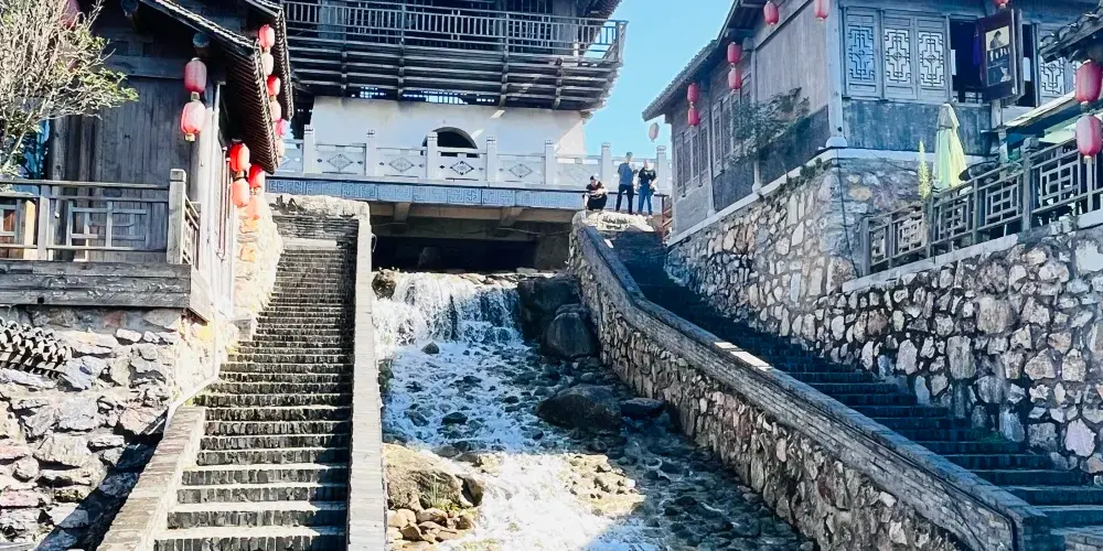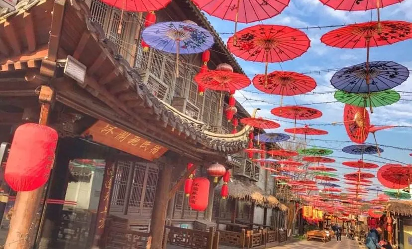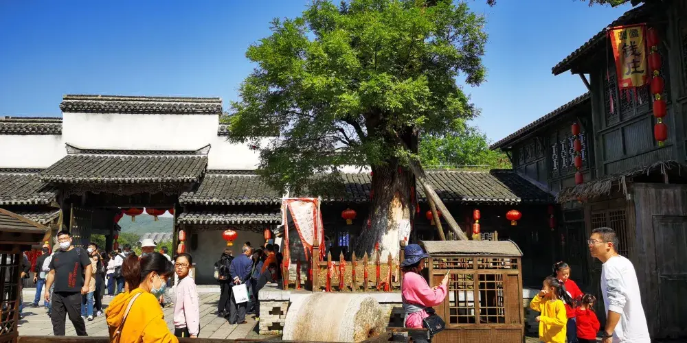 則評價千华古村是一座位于句容宝华山脚下的仿明清古村,古村中为游客展现了约三百年前的康乾盛世时期黎民百姓的生活全貌。西洋镜、镖局、手工织布机等都在这里一一呈现,让人仿佛穿越到了明清时代。沿着河道走,两边的吊脚楼,一个挨着一个地排列着,在蓝天白云的映衬下,美丽祥和。