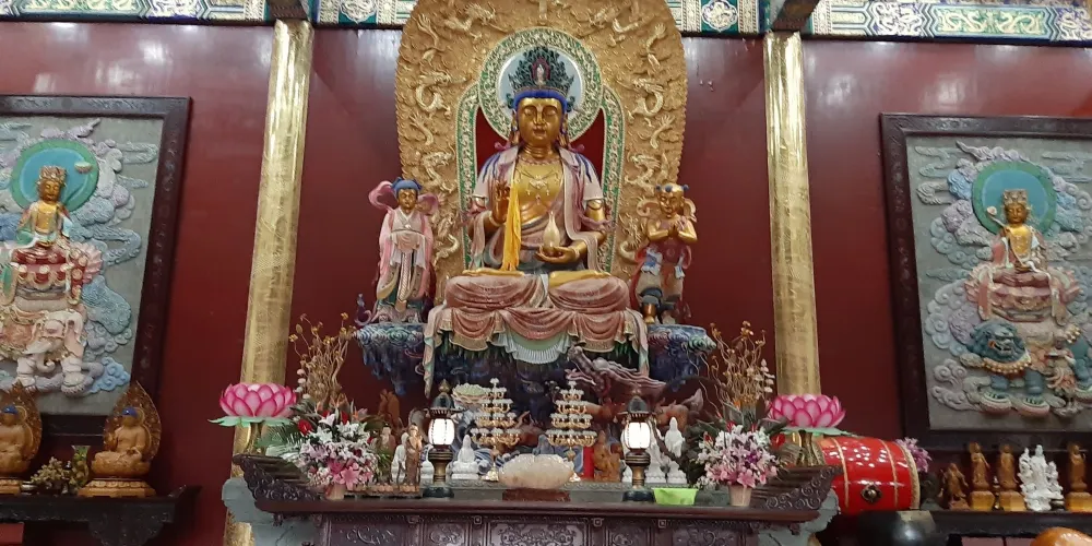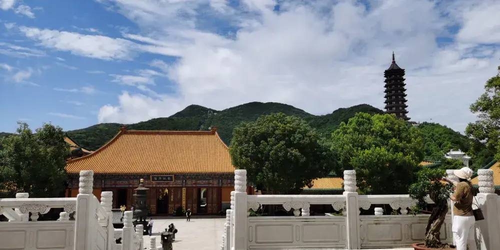 法雨寺又稱後寺,位於普陀山風景區中部,其規模僅次於“前寺”普濟寺,為普陀三大寺之一。法雨寺依山取勢,分列六層台基上。入山門依次升級,中軸線上有天王殿,後有玉佛殿,兩殿之間有鐘鼓樓,又後依次為觀音殿、御碑殿、大雄寶殿、藏經樓、方丈殿。每天來此朝拜的香客非常多,是來到普陀山的遊客不可錯過的寺院之一。