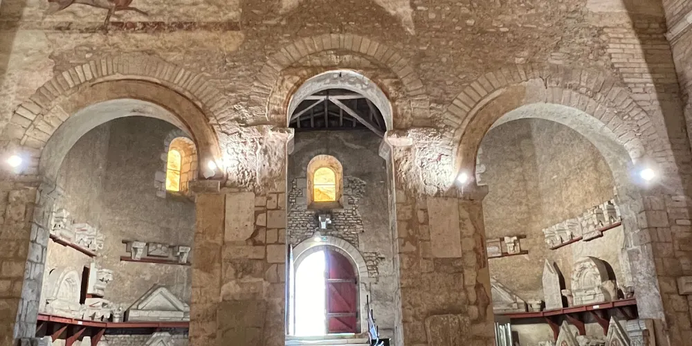 聖讓洗禮堂始建於公元4世紀,是普瓦捷古老的建築之一。在這座古老的教堂內可以看到裝飾着精美圖案的大理石圓柱,而描繪着耶穌、眾聖徒和君士坦丁騎馬像的羅曼風格壁畫也稱得上是經典。