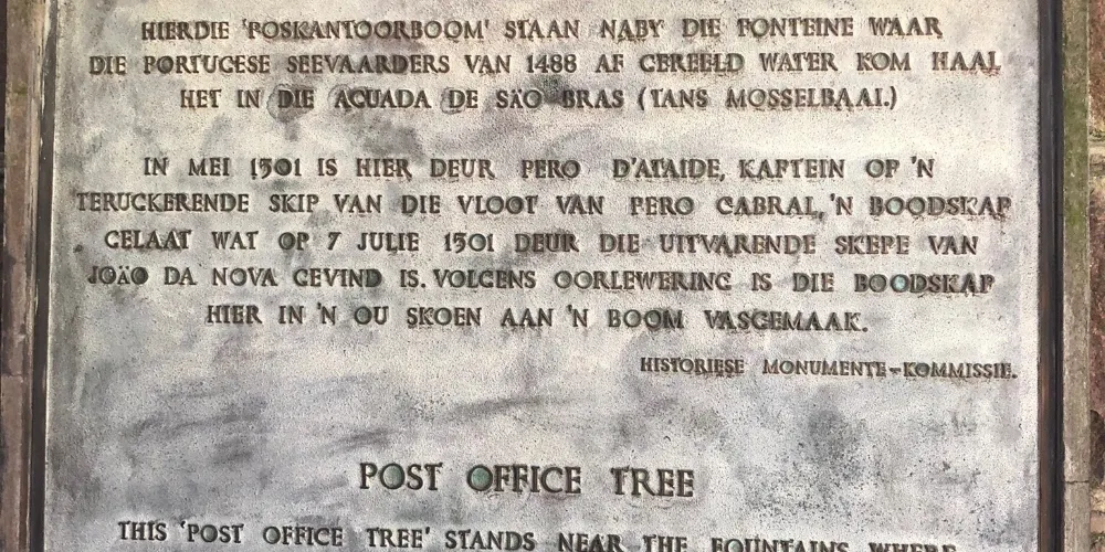 14世紀,葡萄牙航海家佩羅遭遇風暴,損失了大部分艦隊,在莫塞爾灣尋求庇護時,他把記錄災難的信件藏在舊鞋裡,掛在這棵牛奶樹上。後來探險家發現了這封信,自此,這棵樹成為連接歐洲和遠東地區的資訊中繼站,也讓莫塞爾灣成為南非郵政歷史的發源地。
