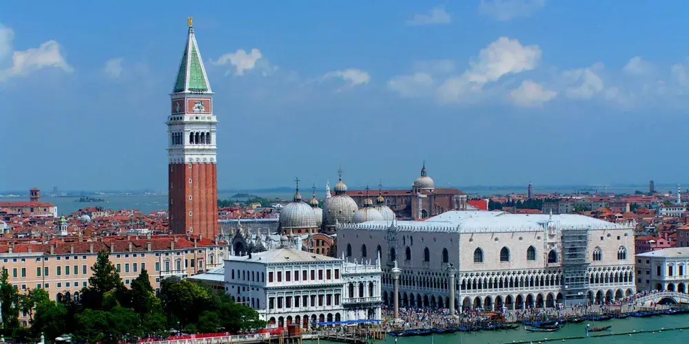 聖馬可鐘樓隸屬於聖馬可大教堂,作為這座潟湖上都市的燈塔,鐘樓長久以來被威尼斯人視為威尼斯不可爭議的地標建築,它在威尼斯的地位更甚於聖馬可大教堂本身。可以搭乘電梯登上樓頂俯瞰城市風光,甚至還能張望到西北方向美麗的阿爾卑斯山。