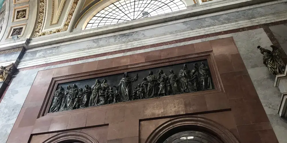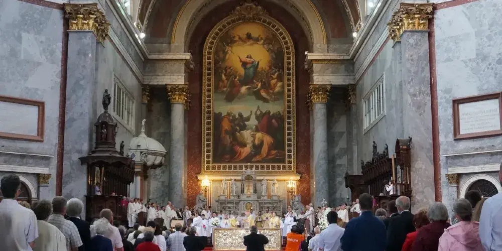 埃斯泰爾戈姆大教堂位於距布達佩斯20公裡的埃斯泰爾戈姆市,又名埃斯泰爾戈姆聖母升天大教堂,是匈牙利一大教堂,歐洲第二大教堂,世界第四大教堂。教堂始建於1820年,完工於1869年,曆時將近50年。如今的大教堂是重新修複的,莊嚴典雅的大教堂用巨大圓柱和高聳的中央圓頂從正面迎接從多瑙灣來的遊人。教堂內的裝飾富麗堂皇,正廳平面呈十字形,聖壇上懸掛著巨幅“聖母升天圖”,是複製威尼斯畫家米開朗基羅的名畫,畫高13米,寬6.5米,據說是世界上最大的一幅在一塊畫布上完成的傑作,畫面構圖宏偉,色澤豔麗,透出莊嚴凝重的宗教氣氛。內牆角與穹頂下的牆壁上有幾位匈牙利著名大主教的畫像和塑像。