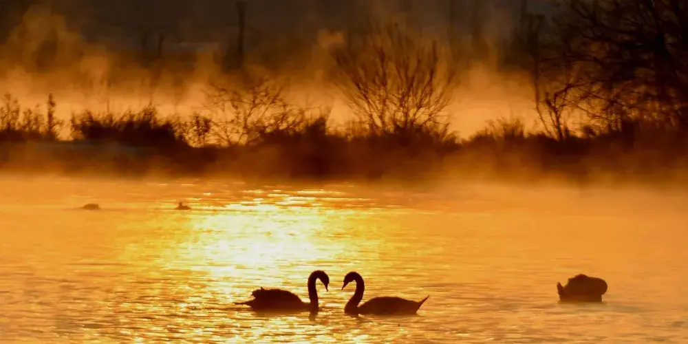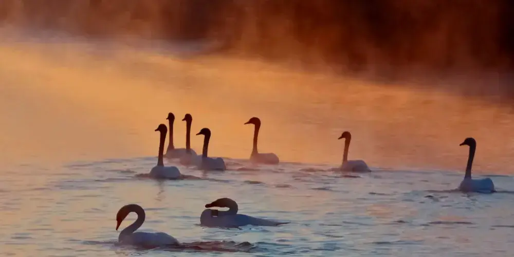 巴音布魯克天鵝湖是一座在碧綠草原中間安靜的湖泊,每年6-9月,許多大天鵝會來此繁育休憩,場面悠靜安詳。很多攝影師會來此拍攝美麗的畫面。 6-9月也是拍攝大天鵝的好季節,此時草黃馬肥,水流靜謐,天鵝遊戲其間,景色十分醉人。