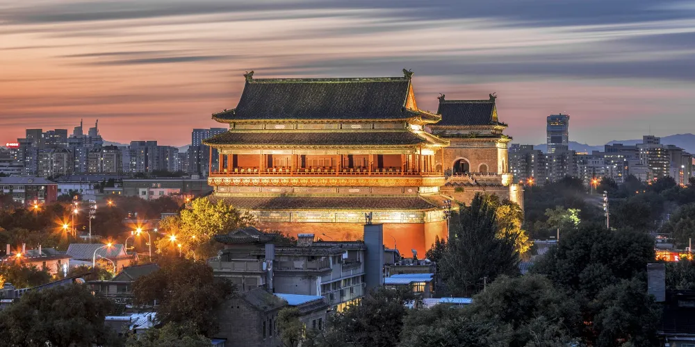 鐘鼓樓是坐落在北京南北中軸線北端的一組古代建築,是元、明、清代都城的報時中心。兩樓前後縱置,氣勢雄偉,巍峨壯觀。由於其類似城樓的建築形式,飛簷翼角的獨特形態,因此具有很高的藝術價值和審美價值,而成為著名的人文景觀。