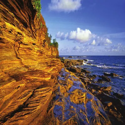 整個潿洲島隨處可見火山巖的痕跡,其中鱷魚山景區是潿洲島火山地質景觀的精華。在這裏你可以看到潿洲島的火山口,千姿百態的火山熔巖,因火山噴發而形成的奇特地貌,還可與潿洲燈塔合影。