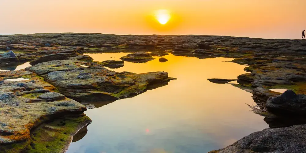 潿洲島地質奇觀眾多,各海灘又是水清沙平,不論在島上什麼位置,這裏的日出日落之景都令人難忘。東側的貝殼沙灘、五彩灘是島上熱門的日出觀賞地,遊客們一般會選擇早上四五點鐘在這裏等待紅日的升起。而西側的滴水丹屏和石螺口海灘則是欣賞日落的好位置。