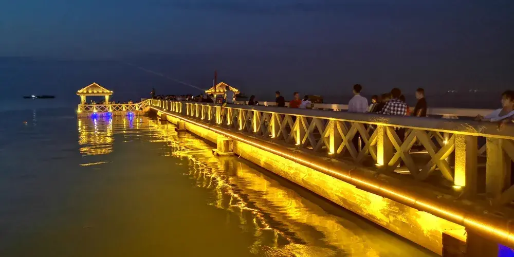 外沙海鮮島是廣西的有名的海鮮集散地和海鮮餐飲區,是一個四面環海的長條形小沙島,擁有適宜觀海的兩公里綿長海岸線。島內東區建有高檔海鮮酒樓、藝術家村等海鮮主題樂園,西區是以運動為主題的海濱休閒度假酒店群。