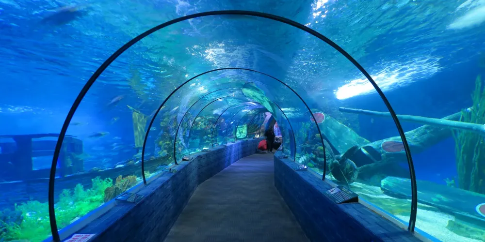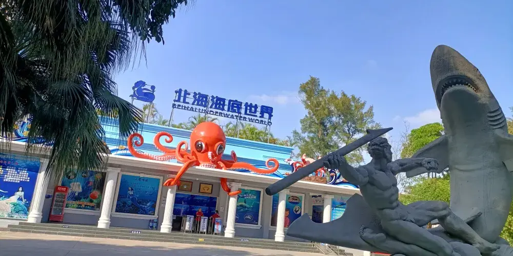 北海海底世界位於北海海濱公園內,是北海老牌的水族館。這裡可以看到種類豐富的海洋生物,如活體珊瑚、鯊魚、海龜等,還有蛇和蜥蜴之類的兩棲動物,以及一些珍稀生物標本。這裡還擁有長長的海底觀光隧道,更有“人鯊大戰”等精彩演出可以看,是親子遊的好去處。