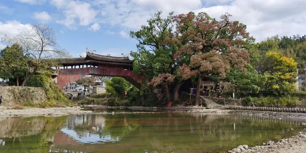 則評價南陽橋又稱玉巖橋,位於泗溪鎮巖頭村。此橋為伸臂梁木平橋,重檐歇山頂,建於同治九年。南陽橋的構造特點是在溪中建石墩,然後在石墩上疊架木樑,向左右平衡伸展。這種雙向伸臂木樑橋可以增加木樑的承託作用,同時還可使木柱在縱向有一定的穩定性。浙江山區很多木橋都採用這種構造。