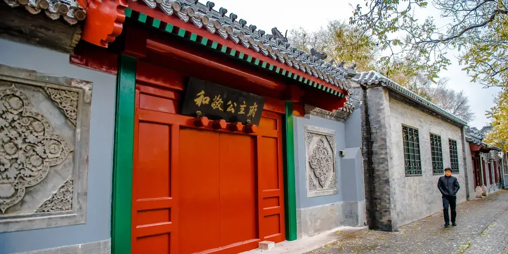 和敬公主府,是清朝乾隆皇帝的女兒和敬公主的府邸。和敬公主出生在1731年,是乾隆皇帝的第三個女兒,因為前兩個女兒全都夭折,因此乾隆也把她視為了掌上明珠,公主的封號是清朝公主的最高級別——“固倫”,和親王平級。所以,我們看到的這座公主府,也是和親王府相同規格的一座大府邸。